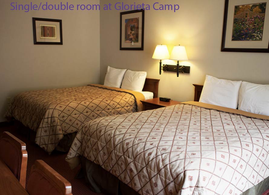 You may want to stay Sunday night in Santa Fe. There are many motel and hotel options. It is not possible to stay at Glorieta Camp on Sunday (they are closed).